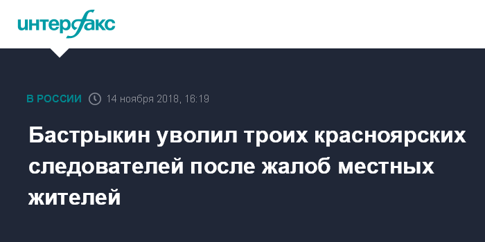 Бастрыкин уволил троих красноярских следователей после жалоб местных жителей