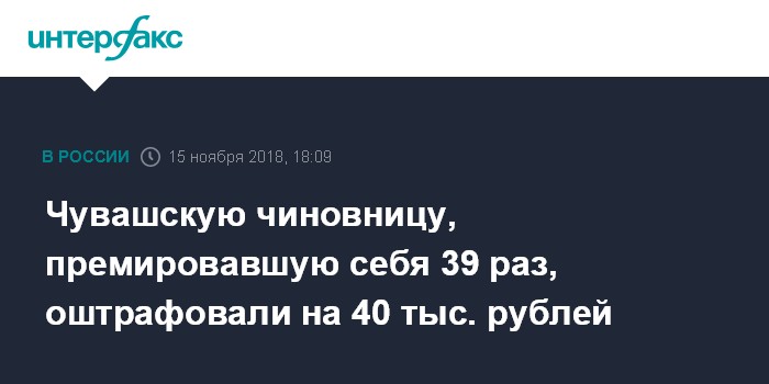 Чувашскую чиновницу, премировавшую себя 39 раз, оштрафовали на 40 тыс. рублей