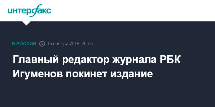 Ранее Игуменов написал о решении покинуть пост главреда журнала РБК на своей странице в Facebook, отметив, что в настоящее время работает над новым номером журнала. Игуменов являлся главредом журнала РБК с 2014 года, до этого 10 лет проработал в Forbes Russia.