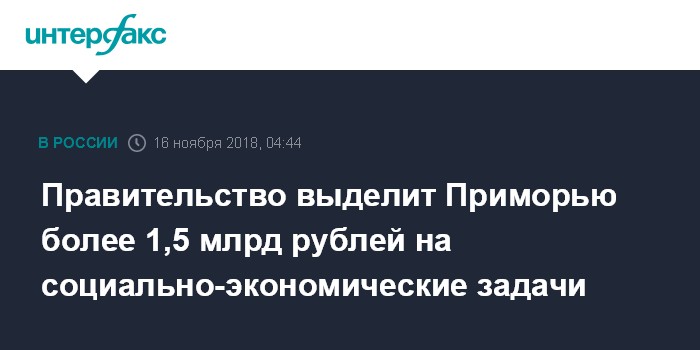 Правительство выделит Приморью более 1,5 млрд рублей на социально-экономические задачи