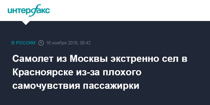 Самолет из Москвы экстренно сел в Красноярске из-за плохого самочувствия пассажирки