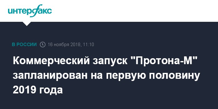 Коммерческий запуск "Протона-М" запланирован на первую половину 2019 года