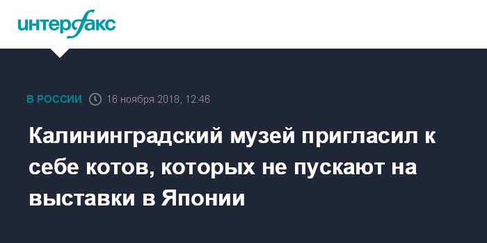 Москва. 16 ноября. INTERFAX.RU - Приморский курорт Зеленоградск в Калининградской области приглашает в гости двух котов из Японии, которых не пускают в местные музеи, говорится на официальной странице города в социальной сети.
