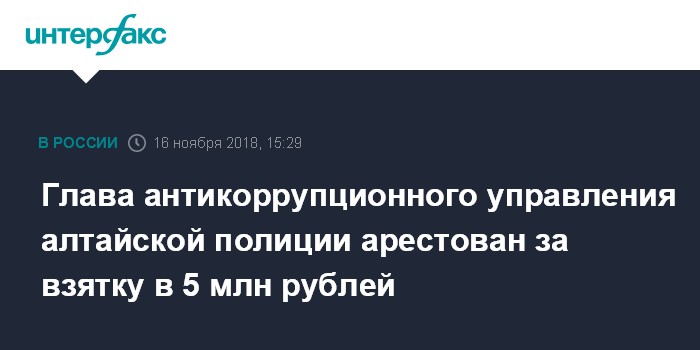 Глава антикоррупционного управления алтайской полиции арестован за взятку в 5 млн рублей