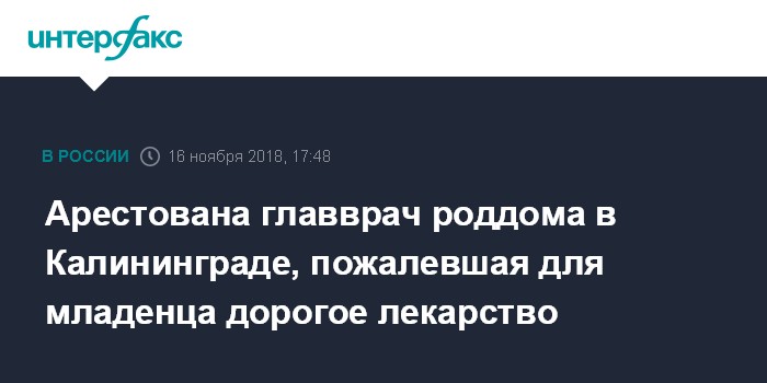 Как сообщалось, в Калининграде в отношении и.о. главврача роддома №4 возбуждено уголовное дело о превышении должностных полномочий (п. "в" ч. 3 ст. 286 и ч. 1 ст. 286 УК РФ). Женщина распорядилась не давать новорожденному медицинский препарат, что вызвало его смерть. Позднее она дала указание подделать документы о том, что ребенок уже родился мертвым. Свою позицию она объяснила высокой стоимостью препарата и ухудшением показателей медицинской статистики о смертности новорожденных.