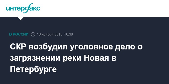 Москва. 16 ноября. INTERFAX.RU - Северо-Западное следственное управление СКР возбудило уголовное дело о загрязнении протекающей в Петербурге реки Новая, сообщает пресс-служба ведомства в пятницу.