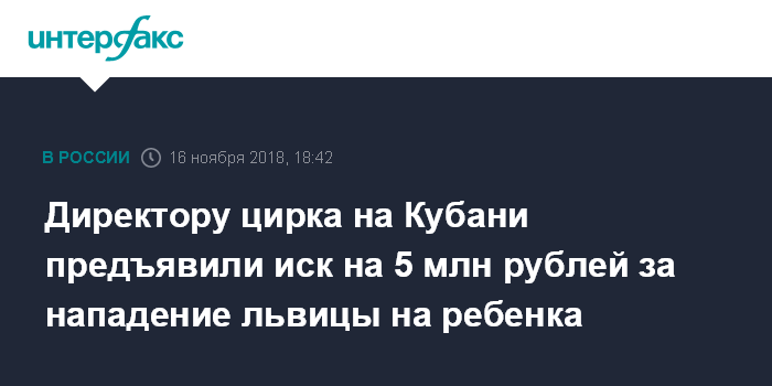 Директору цирка на Кубани предъявили иск на 5 млн рублей за нападение львицы на ребенка