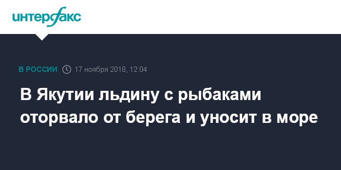 Москва. 17 ноября. INTERFAX.RU - Группа рыбаков в Якутии в субботу оказалась на льдине, которую оторвало от припая и уносит в море.