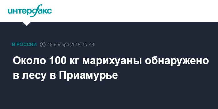 Москва. 19 ноября. INTERFAX.RU - Сотрудники полиции в рамках операции "Мак-2018" обнаружили в лесу возле одного из сел Амурской области почти 100 кг марихуаны, задержан подозреваемый, сообщила официальный представитель МВД России Ирина Волк.