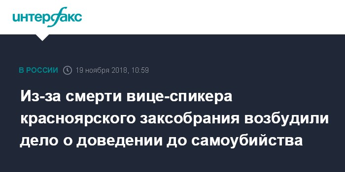 Из-за смерти вице-спикера красноярского заксобрания возбудили дело о доведении до самоубийства