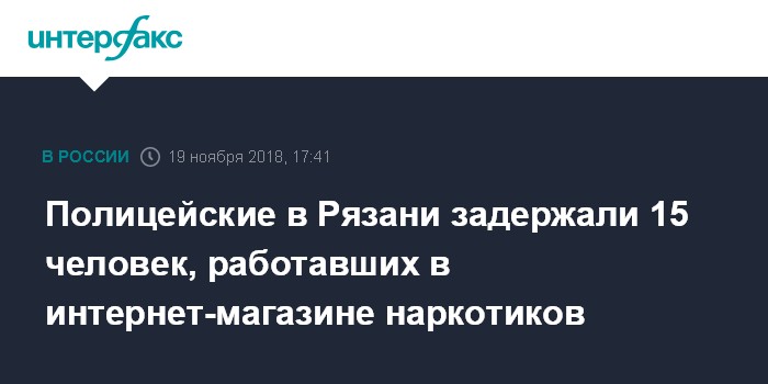Москва. 19 ноября. INTERFAX.RU - Сотрудники рязанского управления по контролю за оборотом наркотиков пресекли деятельность региональных звеньев федерального подпольного интернет-магазина по торговле наркотиками, задержаны 15 человек, сообщила в понедельник пресс-служба УМВД России по региону.