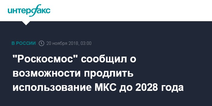 "Сначала было определено: до 2020 года. Сейчас уже все партнеры согласились - до 2024-го. И идет обсуждение продления эксплуатации станции до 2028 года. Я думаю, она до 2028-го точно может отслужить, а дальше - покажут испытания", - заявил Крикалев в интервью, опубликованном во вторник в "Российской газете".