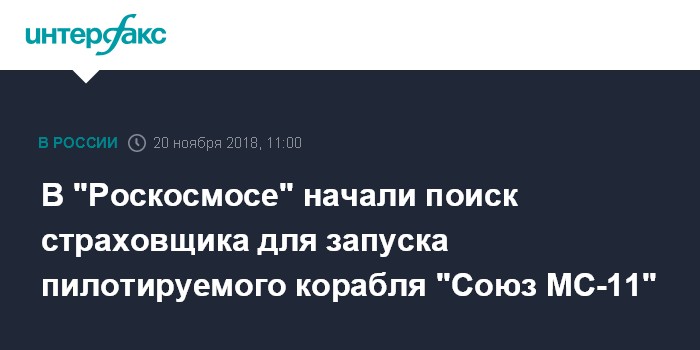 Москва. 20 ноября. INTERFAX.RU - "Центр эксплуатации объектов наземной космической инфраструктуры" (ЦЭНКИ) ищет страховщика рисков при запуске транспортного пилотируемого корабля "Союз МС-11" в составе ракеты-носителя "Союз-ФГ" и его стыковке к Международной космической станции, следует из закупочной документации на сайте госзакупок.