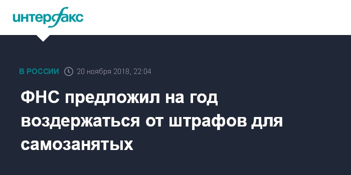 Москва. 20 ноября. INTERFAX.RU - Федеральная налоговая служба РФ предлагает в ходе эксперимента по внедрению нового режима налога для самозанятых воздержаться от штрафов в течение года.