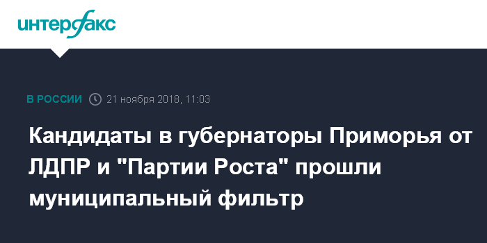 Кандидаты в губернаторы Приморья от ЛДПР и "Партии Роста" прошли муниципальный фильтр
