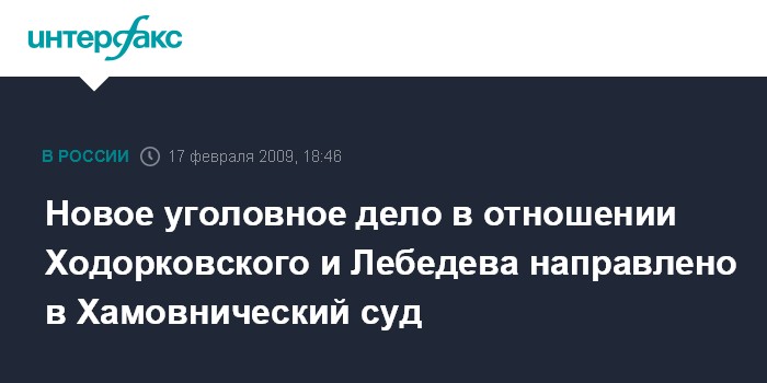 Москва. 17 февраля. INTERFAX.RU - Новое уголовное дело в отношении бывших совладельцев НК "ЮКОС" Михаила Ходорковского и Платона Лебедева направлено в Хамовнический районный суд Москвы.