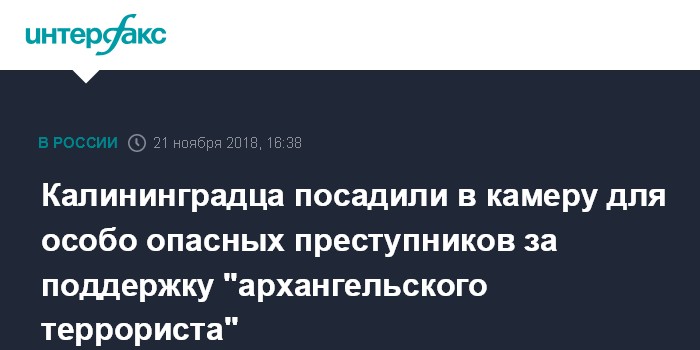 Калининградца посадили в камеру для особо опасных преступников за поддержку "архангельского террориста"