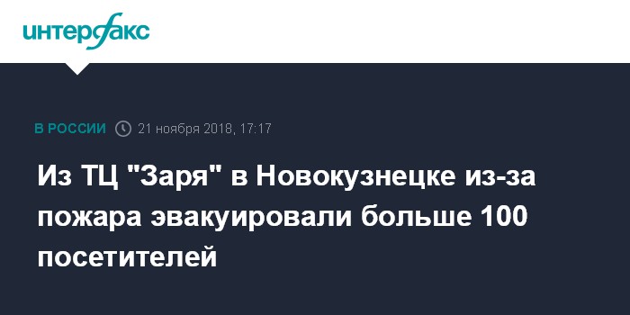 Из ТЦ "Заря" в Новокузнецке из-за пожара эвакуировали больше 100 посетителей