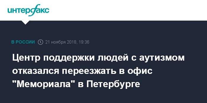 Центр поддержки людей с аутизмом отказался переезжать в офис "Мемориала" в Петербурге