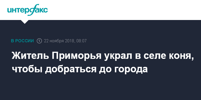 "Инспекторы ППС на территории Уссурийска обнаружили и задержали подозреваемого, который передвигался по улицам города верхом на похищенном коне. Задержанным оказался ранее судимый 19-летний житель села Утесное. В отделе полиции он дал признательные показания, пояснив, что похитил коня, для того чтобы добраться до города", - говорится в сообщении.