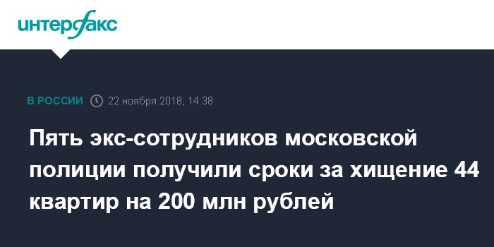 Пять экс-сотрудников московской полиции получили сроки за хищение 44 квартир на 200 млн рублей