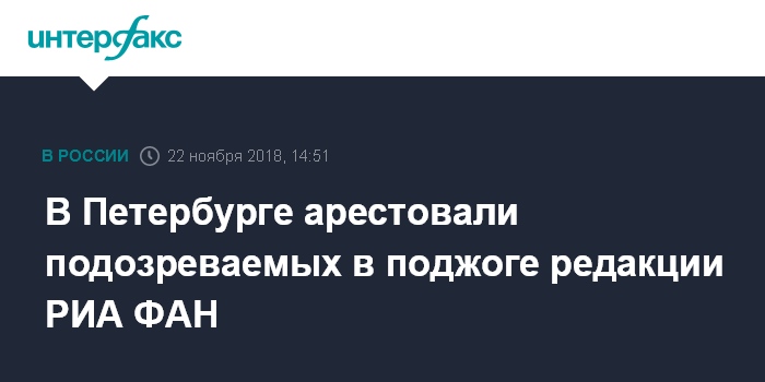 В Петербурге арестовали подозреваемых в поджоге редакции РИА ФАН