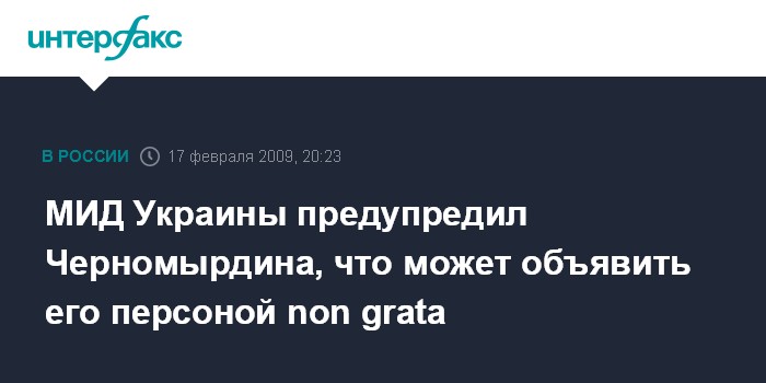 Киев. 17 февраля. INTERFAX.RU - Министерство иностранных дел Украины предупреждает посла Российской Федерации Виктора Черномырдина о возможности объявления его персоной "non grata" в связи с его недипломатическими оценками, комментариями и высказываниями в адрес Украины и ее руководства.