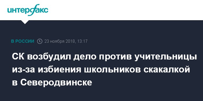 Москва. 23 ноября. INTERFAX.RU - В Архангельской области возбуждено уголовное дело о нанесении побоев ученикам преподавателем школы.