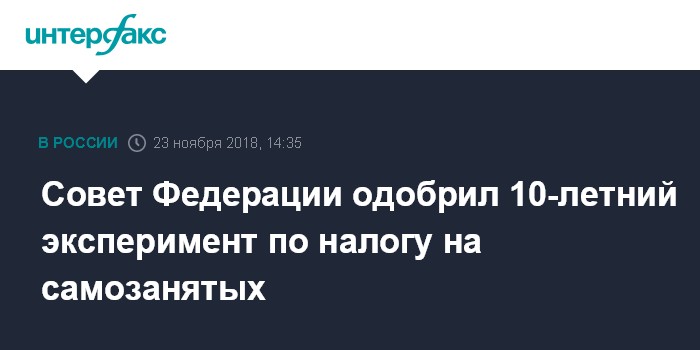 Москва. 23 ноября. INTERFAX.RU - Совет Федерации одобрил пакет законов о проведении в четырех регионах РФ эксперимента по введению налога на профессиональный доход (закон о самозанятых).