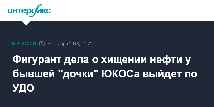Фигурант дела о хищении нефти у бывшей "дочки" ЮКОСа выйдет по УДО