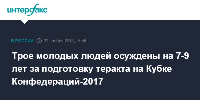 Трое молодых людей осуждены на 7-9 лет за подготовку теракта на Кубке Конфедераций-2017