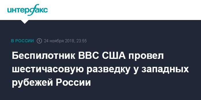 Москва. 24 ноября. INTERFAX.RU - Стратегический беспилотный летательный аппарат ВВС США RQ-4B Global Hawk, способный вести разведку на сотни километров в глубину территории противника, в субботу совершил шестичасовой полет вблизи границ России в регионе Балтики, следует из мониторинговых данных западных авиационных ресурсов.