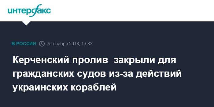 Представитель "Крымских морских портов" подтвердил "Интерфаксу" информацию о закрытии пролива для гражданских кораблей.
