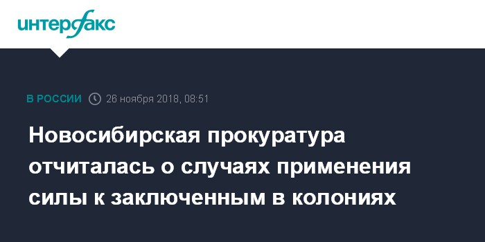 Москва. 26 ноября. INTERFAX.RU - Прокуратура Новосибирской области выявила факты незаконного применения силы и спецсредств к людям, отбывающим наказания в колониях или находящимся в СИЗО, сообщает прокуратура региона.