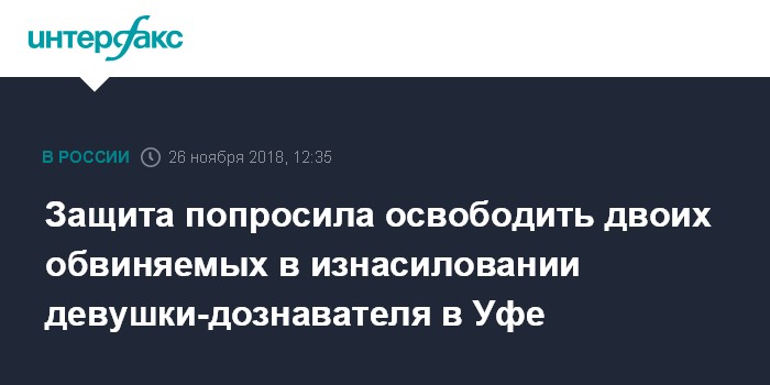 Москва. 26 ноября. INTERFAX.RU - Адвокаты двоих обвиняемых в изнасиловании девушки-дознавателя в Уфе экс-полицейских ходатайствуют об их освобождении из-под стражи и прекращении уголовного преследования своих клиентов.