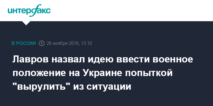 Москва. 26 ноября. INTERFAX.RU - Процесс объявления военного положения начат на Украине, наблюдать за происходящим в этой стране будет интересно, заявил глава МИД РФ Сергей Лавров.