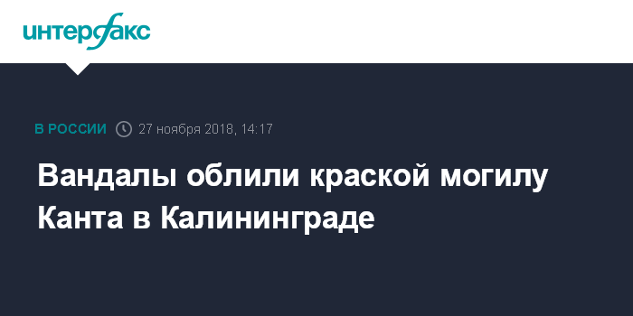 Москва. 27 ноября. INTERFAX.RU - Неизвестные в ночь на вторник облили краской могилу философа Иммануила Канта.
