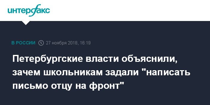 "В данной конкретной ситуации, перед выполнением задания дети читают стихотворение Елены Благининой "Письмо папе на фронт", в котором идет речь о Великой Отечественной войне. Исходя из контекста, ученику предлагается представить, что его отец - солдат Великой Отечественной войны, находится на фронте, и он хочет написать отцу письмо", - рассказали в комитете.