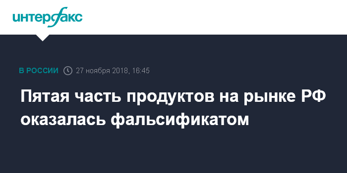 Москва. 27 ноября. INTERFAX.RU - Доля фальсифицированных продуктов на рынке РФ достигает 20%, сообщил журналистам руководитель Россельхознадзора Сергей Данкверт.