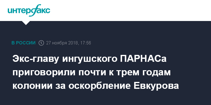 Экс-главу ингушского ПАРНАСа приговорили почти к трем годам колонии за оскорбление Евкурова