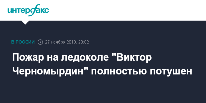 Москва. 27 ноября. INTERFAX.RU - Пожар на строящемся в Петербурге на Адмиралтейских верфях дизель-электрическом ледоколе "Виктор Черномырдин" полностью ликвидирован, сообщили во вторник в МЧС.