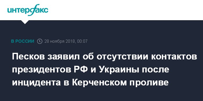 Песков заявил об отсутствии контактов президентов РФ и Украины после инцидента в Керченском проливе