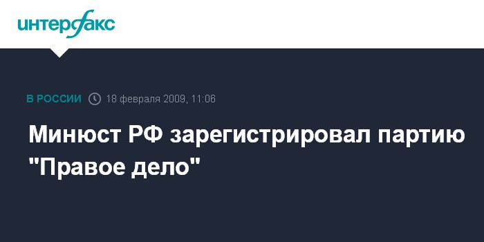 Минюст РФ зарегистрировал партию "Правое дело"