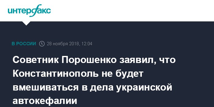 Советник Порошенко заявил, что Константинополь не будет вмешиваться в дела украинской автокефалии