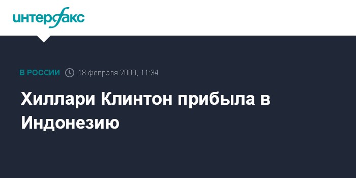 Москва. 18 февраля. INTERFAX.RU - Госсекретарь США Хиллари Клинтон, осуществляющая турне по азиатским странам, прибыла в среду в столицу Индонезии, Джакарту. В ходе этого визита Хиллари Клинтон намерена провести переговоры с президентом страны, Сулило Бамбангом Юдхойоно и другими высокопоставленными руководителями страны.