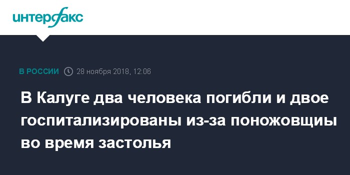 В Калуге два человека погибли и двое госпитализированы из-за поножовщиы во время застолья