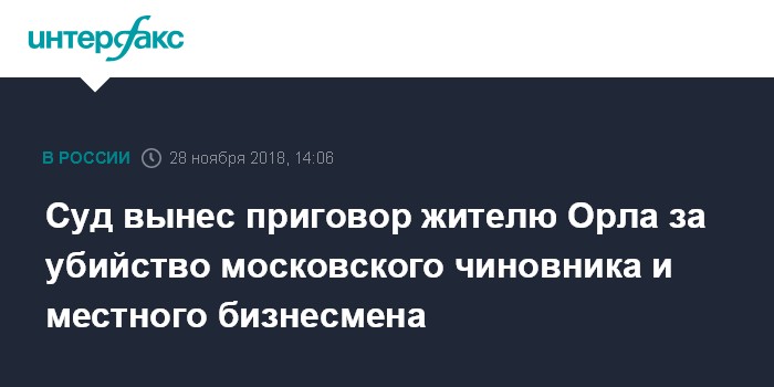 Суд вынес приговор жителю Орла за убийство московского чиновника и местного бизнесмена