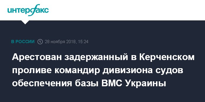 Москва. 28 ноября. INTERFAX.RU - Киевский суд Симферополя в среду постановил арестовать до 25 января 2019 года командира дивизиона судов обеспечения военно-морской базы "Юг" ВМС Украины Владимира Лисового, задержанного российскими пограничниками в Черном море.