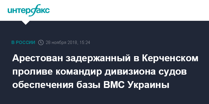 Арестован задержанный в Керченском проливе командир дивизиона судов обеспечения базы ВМС Украины