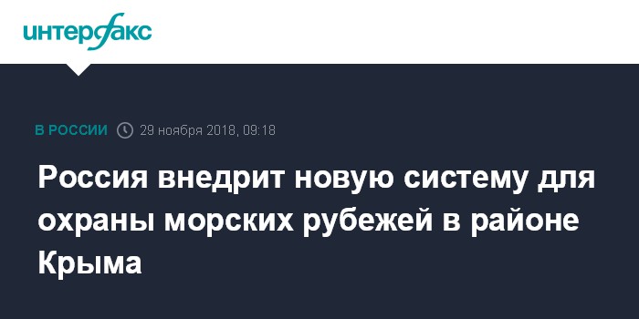 Москва. 29 ноября. INTERFAX.RU - Россия в Крыму начинает использовать автоматизированную систему контроля за надводной обстановкой при охране морских границ, сообщил информированный собеседник "Интерфакса".